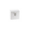 Single towel hook designed for security applications. Unit is surface mounted and protrudes 1–3/16 inches from finished wall. Back plate is made of 14 gauge stainless steel. Hook releases item when excessive force is applied. Front mounted.