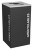Kaleidoscope Collection™ Square recycling receptacle with ORGANICS decal in Emerald Texture finish. Just like a real Kaleidoscope, these recyclers offer consumers the ability to establish their Recycling Centers in a varying selection of colors and patterns to meet their needs. As the facility needs change, so too can the Kaleidoscope Collection™ with the addition of units that fit snugly together or up against corners or walls. ADA Complaint and constructed of fire-safe steel. Easy to remove steel top finished in Silver Star powder-coat with full trash opening. Easy to read, pre-applied WHITE decals on 2 sides of the units to indicate waste stream. Rigid plastic liners with ample 24-gallon capacity. Four heavy-duty feet keep the units slightly elevated to allow for air circulation and help restrict mold and mildew growth and unsightly discoloration of floor surfaces from “mop around” ring.