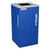 Kaleidoscope Collection™ Square recycling receptacle with Plastic decal in Royal Blue Texture finish. Just like a real Kaleidoscope, these recyclers offer consumers the ability to establish their Recycling Centers in a varying selection of colors and patterns to meet their needs. As the facility needs change, so too can the Kaleidoscope Collection™ with the addition of units that fit snugly together or up against corners or walls. ADA Complaint and constructed of fire–safe steel. Easy to remove steel top finished in Silver Star EXL–Coat™ powder–coat with 41/2" circle for plastics. Easy to read, pre–applied WHITE decals on 2 sides of the units to indicate waste stream. Rigid plastic liners with ample 24–gallon capacity. Four heavy–duty feet keep the units slightly elevated to allow for air circulation and help restrict mold and mildew growth and unsightly discoloration of floor surfaces from "mop around" ring.