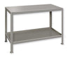 12 gauge steel construction. Sides 2" deep. Floor clearance 5". Equipped with removable handle 36 1/2" L. Maneuvers with 2 swivel, 2 rigid 4" x 2" steel casters. Dimensions: 18" x 300". Capacity: 1,000–lbs. Optional flat deck, floor locks, wheel brakes, and extra handles available.