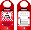 Lock out more equipment with the large reach hasp made to withstand the tough and abusive environment. Scissor–style hasp is comprised of two high–strength .090" thick red anodized aluminum plates. When closed the holes line up to accommodate up to six padlocks. Jaw ends are offset to crossover one another when closed – this prevents prying and tampering of the hasp. Get true 1 1/2" round reach with the full jaw opening. Inside corners are angled–cut so as to not interfere with critical space when opening and closing the hasp. The hasp is a recognizable tag shape measuring 6 3/4" x 3 1/8". It incorporates bold, contrasting red/white/black lockout hazard message labels on both sides – with space to write in necessary information. Hasp has smooth aluminum finish.