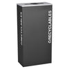 Kaleidoscope Collection XL™ Rectangular 17–gal recycling receptacle. Includes rigid plastic liner with lift handles, sturdy feet to protect floor surfaces and keep unit slightly elevated to allow for air circulation and prevent mold/mildew growth and "mop around" rings. Fingerprint–proof textured Black EXL–COAT™ powder coat finish on body with SIlver Star lid with co–mingle opening. Crisp, white, easy to read PLASTIC graphic applied on two sides.