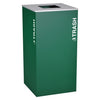 Kaleidoscope Collection XL™ Square 36–gal recycling receptacle. Includes rigid plastic liner with lift handles, sturdy feet to protect floor surfaces and keep unit slightly elevated to allow for air circulation and prevent mold/mildew growth and "mop around" rings. Fingerprint–proof textured Royal Blue EXL–COAT™ powder coat finish on body with SIlver Star lid with co–mingle opening. Crisp, white, easy to read CANS/BOTTLES graphic applied on two sides.