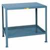 All welded steel construction means years of rugged service and no assembly. Single shelf model with open style cross–arm base serves as a workbench where seating is required. All models are 34" high and feature 4 swivel casters for increased mobility, and 5" non–marking polyurethane wheels with ball bearings. Wheel brakes are standard on single shelf models. 1,000–lbs Capacity. Dimensions: 30" x 60".