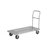 For transporting panels, roll goods and other long items. Three removable uprights extend 27" above the deck. Load space between uprights is 9–1/2". Swivel casters have 5" non–marking polyurethane wheels. Comes with wood rails to protect the load. Capacity: 1,000–lbs. Dimensions: 24" x 36".