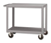 Designed to handle heavy loads, available in two or three shelf configuration. Units measure 32–1/2"H and have a shelf clearance of 22–1/4" on two shelf models. Floor clearance of 6–1/2". Units maneuver on 2 swivel, 2 rigid 5" x 2" phenolic casters. Capacity 3,000–lbs. Optional floor locks, wheel brakes, drawers, tray or flat shelves, and writing shelf for tray top models available.
