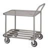 Constructed from all welded 1–1/16" tubing and 14 gauge channel formed steel. One shelf, with a deck height measuring 15." Maneuvers with 2 swivel, 2 rigid 5" x 1–1/4" polyurethane casters. Dimensions: 24" x 42" x 36". 1,000–lbs capacity. Optional floor locks and wheel locks available.