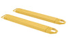 Provide the extra support needed to lift long or large objects with a fork truck. Welded steel construction with cast steel tips. Steel retaining strap (loop style*) prevents fork extensions from sliding off forks during use. Powder coat yellow finish. OSHA regulations require that extensions are no more than 150% of the existing fork length. (e.g. 48" existing forks, the fork extension should not exceed 72"). Maximum capacity is 4,000 pounds evenly distributed. 48" Length.