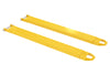 Accommodates Fork Width: 6", Fork Extension Inside Width: 6", Length: 63", Maximum Fork Thickness: 2", Style: Pin – Fork Extensions – Provide the extra support needed to lift long or large objects with a fork truck. Welded steel construction with cast steel tips prevents fork extensions from sliding off forks during use. Powder coat yellow finish. OSHA regulations require that extensions are no more than 150% of the existing fork length. (e.g. 48" existing forks, the fork extension should not exceed 72"). Maximum capacity is 4,000 pounds evenly distributed. Pin Style: Remove pin and lay extension over fork or drive fork into the extension. Re–insert the pin behind the heel of the fork to secure extension.