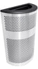 Venue Collection™ Perforated Stainless Steel half round receptacle. Brushed stainless steel body is fully welded with a contemporary perforated hole pattern. Hinged lid with full waste opening is finished in platinum finish. 22-gal capacity LLDPE plastic liner with lift holes. The liner base resin meets UL94 flammabliity standard. Heavy duty feet on bottom to protect unit and floor surfaces. Contains over 60% recycled steel and 100% post consumer recyclable
