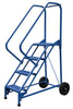 Roll-A-Fold Ladder, the portable ladder that conveniently folds for storage. Constructed of square tubing framework. Features removable hand railing, deep top platform, perforated steps, and an industrial blue powder coat finish. Unit rolls around on large wheels. MFG Part# LAD-RAF-10-24-P-EZ