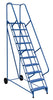 Roll-A-Fold Ladder, the portable ladder that conveniently folds for storage. Constructed of square tubing framework. Features removable hand railing, deep top platform, perforated steps, and an industrial blue powder coat finish. Unit rolls around on large wheels. MFG Part# LAD-RAF-4-P