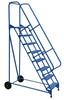 Roll-A-Fold Ladder, the portable ladder that conveniently folds for storage. Constructed of square tubing framework. Features removable hand railing, deep top platform, perforated steps, and an industrial blue powder coat finish. Unit rolls around on large wheels. MFG Part# LAD-RAF-9-24-P