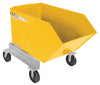 A portable steel Hopper makes handling waste and bulk material safer and more convenient. Fork truck entry openings are designed to move hopper over rough terrain. Foot operated caster lock is included. Unit tilts with assistance from operator while seated on fork truck. Handle for transporting. The included safety restraint should be properly secured to a fork truck before dumping. Welded construction makes them durable. Baked-in powder-coated toughness with galvanized base.