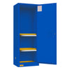 FM Approved, Corrosive Storage Cabinet, 16 Gallon, 1 Door, Self Close, 1 Shelf, 2 Plastic Trays, Blue