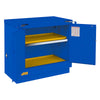FM Approved, Corrosive Storage Cabinet, 22 Gallon, 1 Door, Manual Close, 2 Shelves, 3 Plastic Trays, Blue