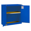 FM Approved, Corrosive Storage Cabinet, 22 Gallon, 2 Doors, Manual Close, 1 Shelf, 2 Plastic Trays, Blue