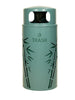 Nature Series Outdoor Trash Receptacle in Bronze powder coat. Features laser TRASH designation and bamboo stalk pattern. Aluminum dome top with rectangular trash openings and 33 gallon leak-proof rigid plastic liner in sandstone. Includes in-ground mounting kit and B-1022 mounting brackets for pole and wall surfaces.