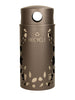 Nature Series Outdoor Trash Receptacle in Malachite powder coat. Features laser TRASH designation and bamboo stalk pattern. Aluminum dome top with rectangular trash openings and 33 gallon leak-proof rigid plastic liner in hunter green. Includes in-ground mounting kit and B-1022 mounting brackets for pole and wall surfaces.