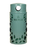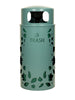 Nature Series Outdoor Trash Receptacle in Bronze powder coat. Features laser TRASH designation and leaf pattern. Aluminum dome top with rectangular trash openings and 33 gallon leak-proof rigid plastic liner in sandstone. Includes in-ground mounting kit and B-1022 mounting brackets for pole and wall surfaces.