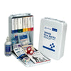 25-Person SmartCompliance Medium Industrial First Aid Kit - Model Number: 1050FAE0103AC|UOM: EA|Kit Includes:|(25) 1" x 3" Fabric Bandages|(25) 3/4" x 3" Plastic Bandages|(1) Knuckle (5) & Fingertip Bandages (5)|(1) Triangular Sling/Bandage, 40" x 40" x 56"|(1) 2" Conforming Gauze Rolls|(10) 3" X 3" Gauze Dressing Pads|(1) 3" Conforming Gauze Rolls|(1) 5" X 9" Trauma Pad|(10) BZK Antiseptic Towelettes, Sting-Free|(10) First Aid/Burn Cream|(10) Antibiotic Ointment|(10) 1/2" x 10 yd First Aid Tape|(1) Scissors|(2) Exam-Quality Vinyl Gloves (Pair)|(1) Stainless Steel Tweezers|(1) First Aid Guide - First Aid and Emergency Products - First Aid Kits - SmartCompliance