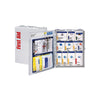 25-Person SmartCompliance Large Food Industry First Aid Kit w/o Medications - Model Number: 1301FAE0103AC|UOM: EA|Kit Includes:|(50) 1" x 3" Visible Blue Metal Detectable Bandages|(20) Knuckle Visible Blue Metal Detectable Bandages|(20) Fingertip Visible Blue Metal Detectable Bandages|(50) Bandage Protectant/Finger Cot |(1) 2" x 5 yd Elastic Bandage Wrap|(1) Triangular Sling/Bandage, 40" x 40" x 56" |(10) 2" x 2" Gauze Dressing Pads|(1) 2" Conforming Gauze Rolls|(10) 3" x 3" Gauze Dressing Pads|(1) 3" Conforming Gauze Rolls|(1) 5" x 9" Trauma Pad|(10)Alcohol Cleansing Pads|(20) BZK Antiseptic Towelettes, Sting-Free|(6) Burn Relief, 3.5 g|(10) First Aid/Burn Cream|(10) Antibiotic Ointment |(1) 1" x 5 yd Cloth First Aid Tape|(1) 1/2" x 10 yd First Aid Tape|(1) Scissors |(1) Eyewash, 1 oz|(10) 2" Moleskin, Blister Prevention|(2) Exam-Quality Vinyl Gloves (Pair)|(1) Stainless Steel Tweezers|(1) First Aid Guide - First Aid and Emergency Products - First Aid Kits - SmartCompliance