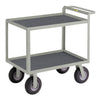 • Welded steel construction that arrives ready for immediate use• Complete pneumatic 9" casters that offer a smooth, air-cushioned ride• Top shelf height of 34" with adjustable edge options – choose between a 1-1/2" retaining lip or a flush design• Shelf clearances of 18" with lipped shelves and 19-1/2" with flush shelves• Non-slip vinyl shelf surfaces complemented by an attractive powder-coated gray finish• Designed and built in the USA for high-load applications up to 1200 lbs