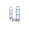 Narrow width is ideal for busy aisles and two shelves create twice the loading area! 12 ga. shelves have 24" clearance. Six wheel design is fully maneuverable with two 8" x 2" rigid center wheels and four 5" swivel corner wheels. Non–marking Polyurethane tread prevents wheel marks on your floor. End panels extend 48" high for extra capacity and are constructed from 1–1/2" x 3/16" slats for extra visibility. Capacity 2000 lbs. Dimensions: 16" x 60".
