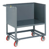 Raised 12 gauge steel platform is 20" high to help minimize bending. 3 14–gauge steel solid sides extend 20" high above the deck to help contain those big loads and small parts. All–welded construction ships fully assembled and ready for immediate use. 2 swivel, 2 rigid casters with 6" non–marking polyurethane wheels. Capacity: 2,000–lbs. Dimensions: 24" x 48".