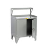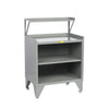 All welded 12 gauge construction. Top surface is enclosed on three sides and a flush front edge. The writing surface height can be set from 39–1/2" – 42–1/2" above the floor. The 3 shelf version has 13" of clearance between the three shelves. Riser measures 10" deep and is 12" above the writing surface allowing storage of most 3 ring binders. Floor glides adjust to almost any uneven floor surface. Dimensions: 24" x 36".