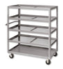 For stock and general shop use. Push handle at both ends. Units measure 36" OAH, 22" to top shelf. Maneuvers on 2 swivel, 2 rigid, 5" x 2" semi–steel casters. 2,000–lbs Capacity. Optional flat bottom shelf, offset handle, wheel brakes, and floor lock available.