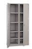 Unique design allows to be accessed from both sides. Comes with 4 shelves and a 1,000–lbs capacity. Dimensions: 36"W x 19"D x 72"H. Options: Extra shelves.