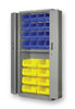 Constructed of 16 gauge steel with 1/2" hemmed edge. Top box is 12" deep, bottom tray 2–1/2" deep, shelf clearance 18". Floor clearance 6". Dimensions: 18" x 36" x 36.5". Capacity: 1,100–lbs. Cart comes with poly casters.