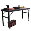 Valley Craft’s 96 x 34” Mobile Adjustable Height Work Table is constructed of heavy duty 14 gauge steel, built to last, and is ideal for permanent or temporary workstations. Ergonomically friendly, this tables goes from 29-45” in height, adjustable on 2” increments. Legs quickly unfasten to fold down for convenient transport or storage.
