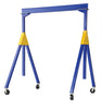 The Industrial Steel Gantry Crane is designed for transporting and positioning materials along the beams length. The solid steel construction will provide years of service. Unit comes standard four (4) position locking swivel casters with roller bearings. Locks the rigging in 1 of 4 positions; you can set the wheels and push the gantry crane forward, back, left or right. There is an optional Total Locking Casters that lock the rigging in any position and locks the wheel from rotating. More economical and flexible than permanent cranes and features a quick setup design. Painted blue finish with warning and operating stickers and complete owner's manual. Designed for semi-permanent or permanent applications. Requires assistance from fork truck to set-up.