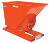 Uniform Capacity (pounds): 2,000, Steel (gauge): 12, Volume (cubic yards): 3/4, Fork Pocket Center (in.): 18, Usable Fork Pocket Width (in.): 7–1/2, Usable Fork Pocket Height (in.): 2–1/2, Usable Chute Width (in.): 28–1/4, Usable Chute Length (in.): 54–1/2, Usable Chute Height (in.): 32–1/2, Finish: Powder Coat Red – This Light Duty Self–Dumping Steel Hopper with Bumper Release automatically dumps when bumper release contacts the side of the dumpster. Hopper returns to an upright and locked position automatically after it dumps. Also includes a cable that may be operated from the seat of the fork truck to manually dump the hopper. A safety restraint is provided to secure the hopper to the fork truck. (Length Dimension is measured at top of chute.) Hopper is stackable if you stack the top hopper turned ninety (90) degrees from the bottom.