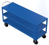 The Ergo-Handle Cart are constructed of heavy-duty steel to handle uniform loads up to 4,000 pounds. The patented ergonomic chrome plated handle decreases fatigue by allowing the operator to easily maneuver the cart. It can be inverted for individual height comfort and handling of long loads. Rolls on 8in x 2in casters, two (2) rigid and two (2) swivel with roller bearings. Many caster styles to choose from. MFG Part# DH-MR2-2436-D