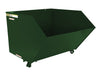 The Heavy Duty Low Profile 90degree Self-Dumping Steel Hopper feature a full ninety (90) degree dump angle with a cushioned rubber bumper stop. The low profile design is essential for convenient loading. Dumping with a fork truck is quick and simple. A cable is pulled from the seat of the fork truck to dump the hopper. The unit returns to an upright and locked position when lowered to the ground. The included safety restraint should be properly secured to a fork truck before dumping. H-25 and H-50 models can be stacked, as well as, the H-100 and H-150 models. Never stack hoppers more than 3 high. Units are only to be stacked unloaded and empty. MFG Part# H-150-HD-GRN-H