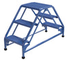 This unique Dual-Sided Step offers more versatility. The steps are made from perforated steel or grip strut steel. The base includes four feet with rubber tips to protect the floor. Steps are spaced 10in apart. Constructed of steel with a powder coat blue finish. Portable units have a yellow finish. MFG Part# LAD-DD-18-2-G