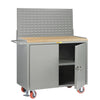 • Manufacturer: Little Giant (Part #: MJ3-2D-2448FLPB)• Top work surface dimensions: 24" x 48" with a height of 41"• Retaining lip on three sides (excluding Butcher Block Top models)• Four standard worktop surface options• Mobility provided by 2 swivel and 2 rigid non-marking polyurethane wheels• 16-gauge pegboard tool storage for streamlined organization• Floor lock on the handle end for secure placement• Durable, powder-coated gray finish for lasting performance