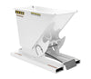 Uniform Capacity (pounds): 6,000, Steel (gauge): 8, Volume (cubic yards): 1/3, Fork Pocket Center (in.): 18, Usable Fork Pocket Width (in.): 7–1/2, Usable Fork Pocket Height (in.): 2–1/2, Usable Chute Width (in.): 20, Usable Chute Length (in.): 41–1/4, Usable Chute Height (in.): 27–7/8, Finish: Powder Coat Red – This Heavy Duty Self–Dumping Steel Hopper with Bumper Release automatically dumps when bumper release contacts the side of the dumpster. Hopper returns to an upright and locked position automatically after it dumps. Also includes a cable that may be operated from the seat of the fork truck to manually dump the hopper. A safety restraint is provided to secure the hopper to the fork truck. (Length Dimension is measured at top of chute.) Hopper is stackable if you stack the top hopper turned ninety (90) degrees from the bottom.