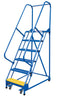 The Standard Slope Ladder is a portable warehouse ladder for every-day use applications. Grip strut steps, handrail included and welded square tubular steel construction with powder-coat blue finish. Rubber feet provided for floor protection. Unit has (2) two all directional spring-loaded swivel casters and (2) swivel casters with total locks. Ships fully assembled and ready to use. MFG Part# LAD-PW-18-5-G