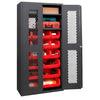 36" wide, 14 gauge, lockable Bin & shelf cabinet, with 18 yellow hook-on bins, 2 adjustable shelves, flush door style, gray Mfg Part#: EMDC-361872-18B-2S-95