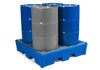 -Safe storage of hazardous materials like oils, coolants, acids, caustics, and other aggressive liquids -Modern design in combination with high functionality -Rugged construction provides impact and shock resistance even under high temperature conditions -Secure storage - sumps are 100% tested and 100% guaranteed leak-free -Completely sealed, seamlessly processed, 100% liquid-tight -Extremely stable supports molded in the bottom of the sump, supports are used for the safe mounting of gratings or pallets -Four-way forkliftable -Rust-free and easy to clean -Compliant sump volumes meet EPA, OSHA, NFPA, UFC, and other regulations -Forklift pockets in the base enable it to be safely transported and loaded by drum lifters, pallet trucks and forklifts from all 4 sides. -With poly grating -Regulations and Compliance: SPCC|OSHA|NFPA -Sump Capacity [gal]: 66 -Surface: N/A -Color: Blue -Material: Poly -Grating: Poly -Drums: 4 -Load Capacity per Bay (lbs): 3520