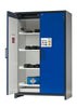 -Active Charging and Storage cabinet for undamaged Lithium-Ion Batteries -All-round protection: 90 min fire protection from the outside in -With tested, liquid-tight spill sump (poweder coated sheet steel). For containment of any leaks form burning or deffective baetteries -With permanently self-closing doors and quality oil-damped doors closers. -Doors can be locked with a profile cylinder (closing system compatible) and lock indicator (red/green) -Extremely robust construction with scratch -proof paints.ofile cylinder (closing system compatible) and lock indicator (red/green) Integral base, accesible underneath, making it easy to change location (base can be closed off by optional panel). However, in order to ensure rapid evacuation in an emergency, we recommend using the cabinet without the base cover. -Integral base, accessible underneath, making it easy to change location (base can be closed off by optional panel). However, in order to ensure rapid evacuation in an emergency, we recommend using the cabinet without the base panel. -For the safe, passive storage of lithium-ion batteries -We strongly recommend that the cabinets are sited at ground floor-level so that evacuation can take place quickly in the event of an incident. Contents: -Smoke Alarm 2 Power strips with 7 sockets each -Bottom collecting sump -No. Of Shelves: 4 -Color: Anthracite grey -Sump Capacity [gal]: 5.8 -Fire Rating: 90 minutes