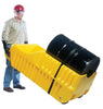 Uniform Capacity (pounds): 1,000, Wheel Diameter (in.): 10, Wheel Width (in.): 2–1/2, Wheel Type: Poly–on–Poly, Accepts: 55–gallon plastic drums, Wheel (quantity): 2 – Drum Truck with Spring Assist is designed for moving plastic drums. Special design features spring mechanism for easy use. Spring allows for easier tilting of fully–loaded drums. Removable hook bar includes built–in bung nut wrenches. Steel construction with powder coat yellow finish.
