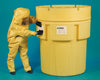 The Eagle 95Gallon Overpack Drum is constructed of yellow blowmolded highdensity polyethylene (HDPE) with UV inhibitors, is durable and lightweight, weather and chemicalresistant, and has a yellow screwon lid.