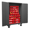48" wide, 16 gauge, lockable mobile cabinet, with 42 blue hook-on bins, flush door style, gray Mfg Part#: 2502M-BLP-42-5295