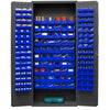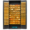 36" wide, 16 gauge, lockable bin cabinet, with 156 red hook-on bins, flush door style, gray Mfg Part#: 2603-156B-1795
