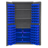 36" wide, 14 gauge, lockable cabinet, with 102 red hook-on bins, 3 adjustable shelves, flush door style, gray Mfg Part#: 3501-BDLP-102-3S-1795